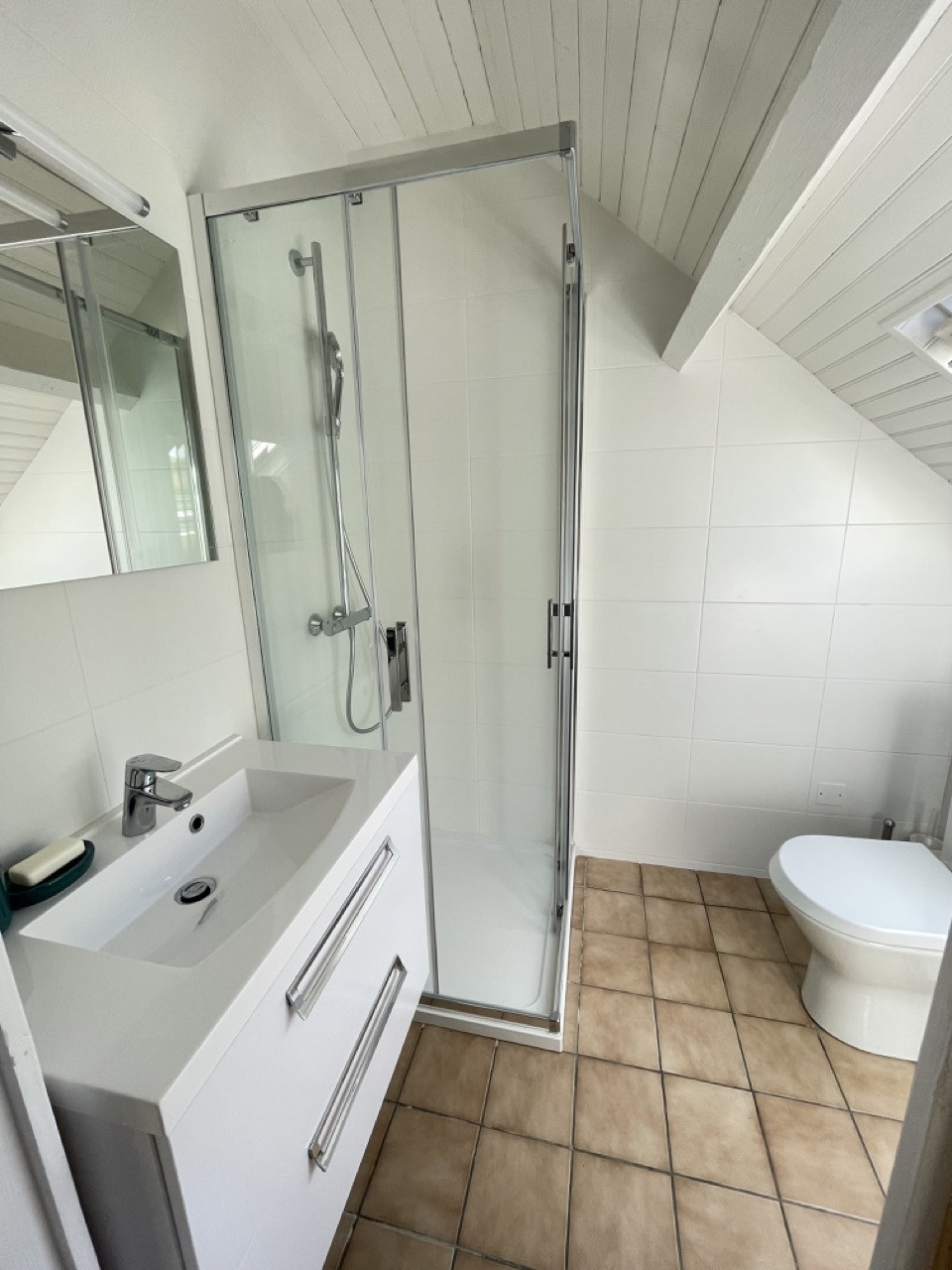 On the ground floor, you’ll find a cozy living area with a fully equipped kitchenette and a bright veranda opening onto the private garden.