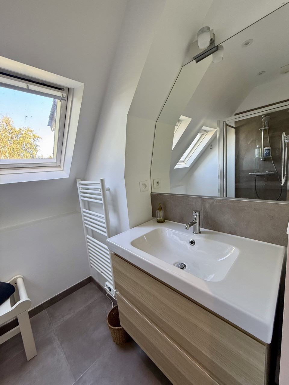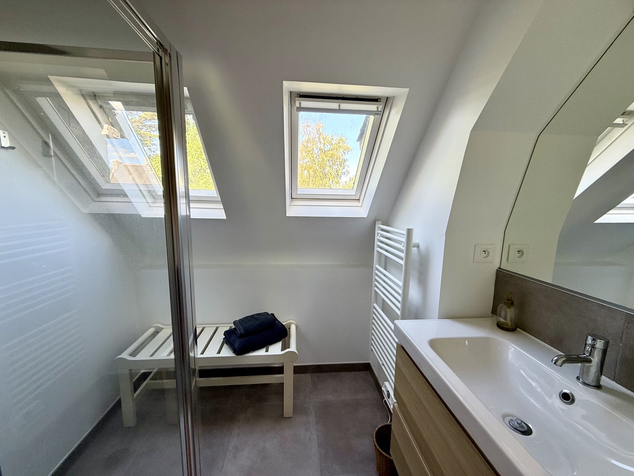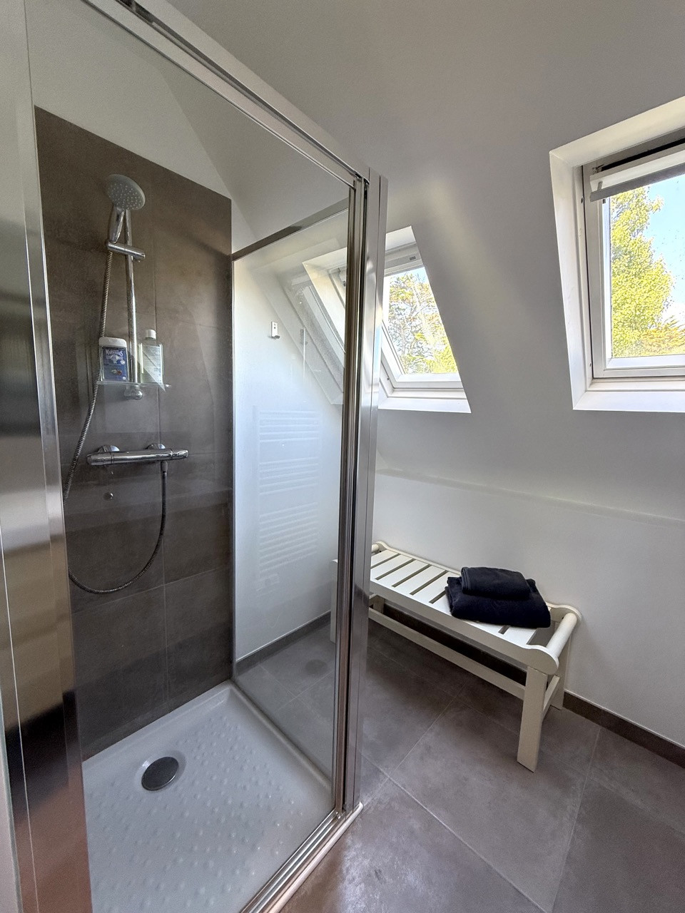 On the ground floor, you'll find a large, light-filled living room opening onto the terrace and garden, a beautiful fully equipped kitchen, a cozy lounge with TV, a first bedroom with its own en-suite shower room, a separate toilet, and a garage with a laundry area and foosball table for the (big) kids.