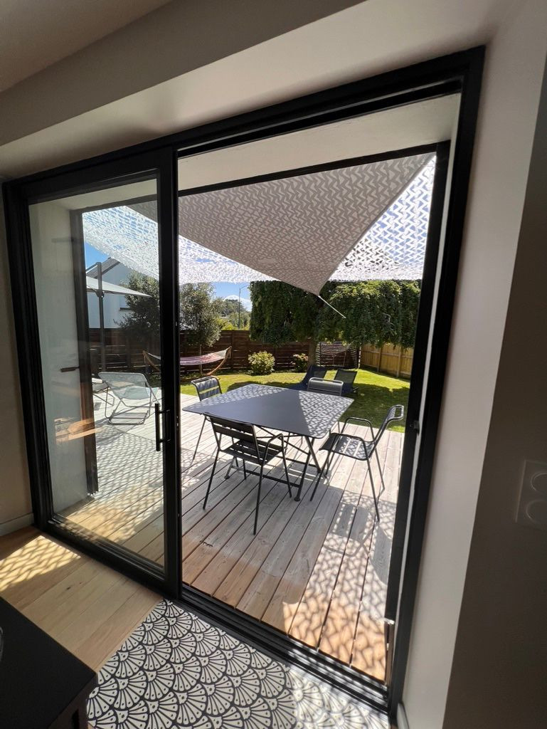Un jardin paysager et une belle terrasse aménagée (mobilier, BBQ) offrent un cadre idéal pour vos repas en plein air, vos moments de détente ou simplement profiter de la brise marine.