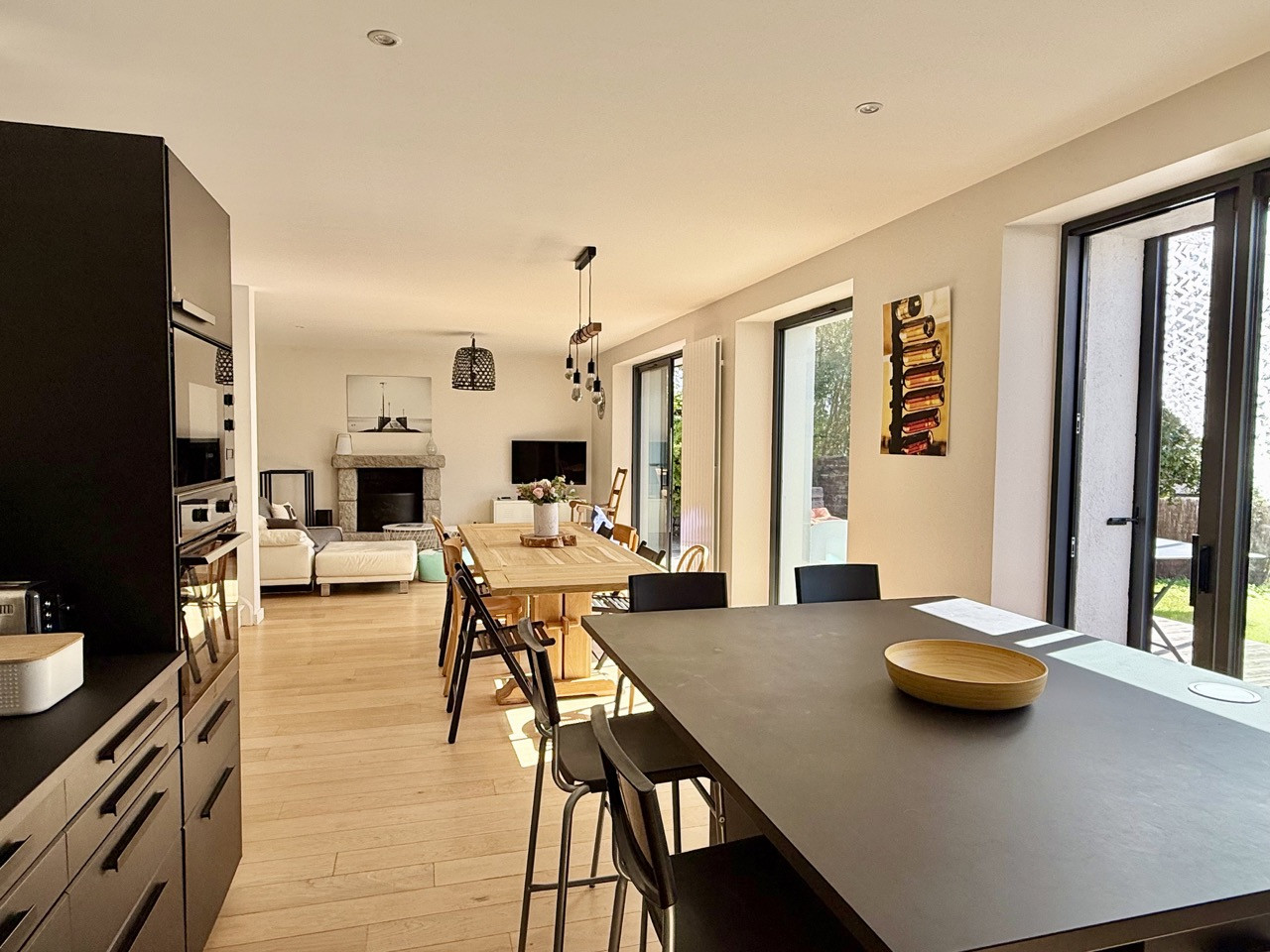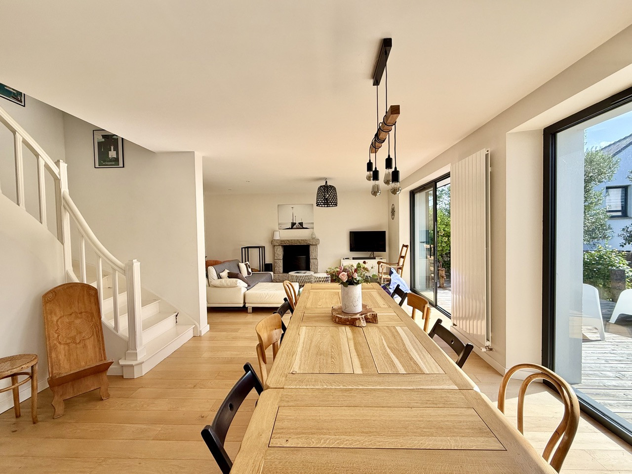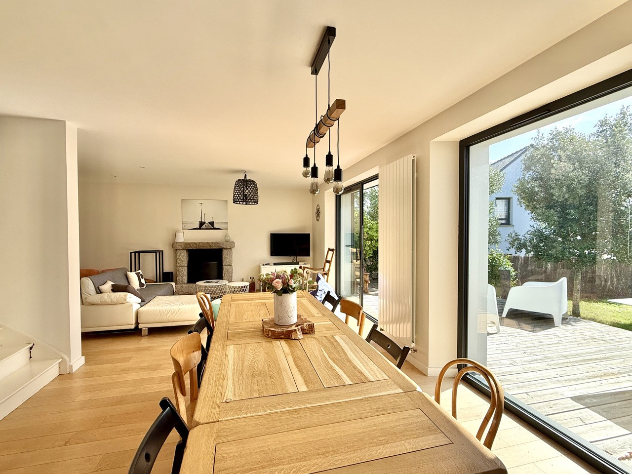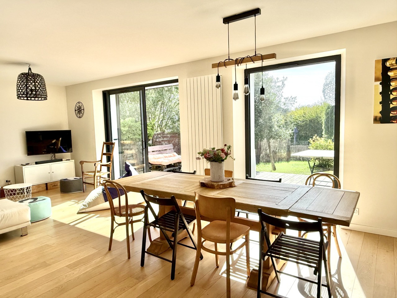 Vous profiterez d’une vaste pièce de vie baignée de lumière, avec salon et cheminée/insert, d’une cuisine moderne équipée avec îlot central, et d’une salle à manger conviviale ouverte sur de grandes baies vitrées donnant sur le jardin.