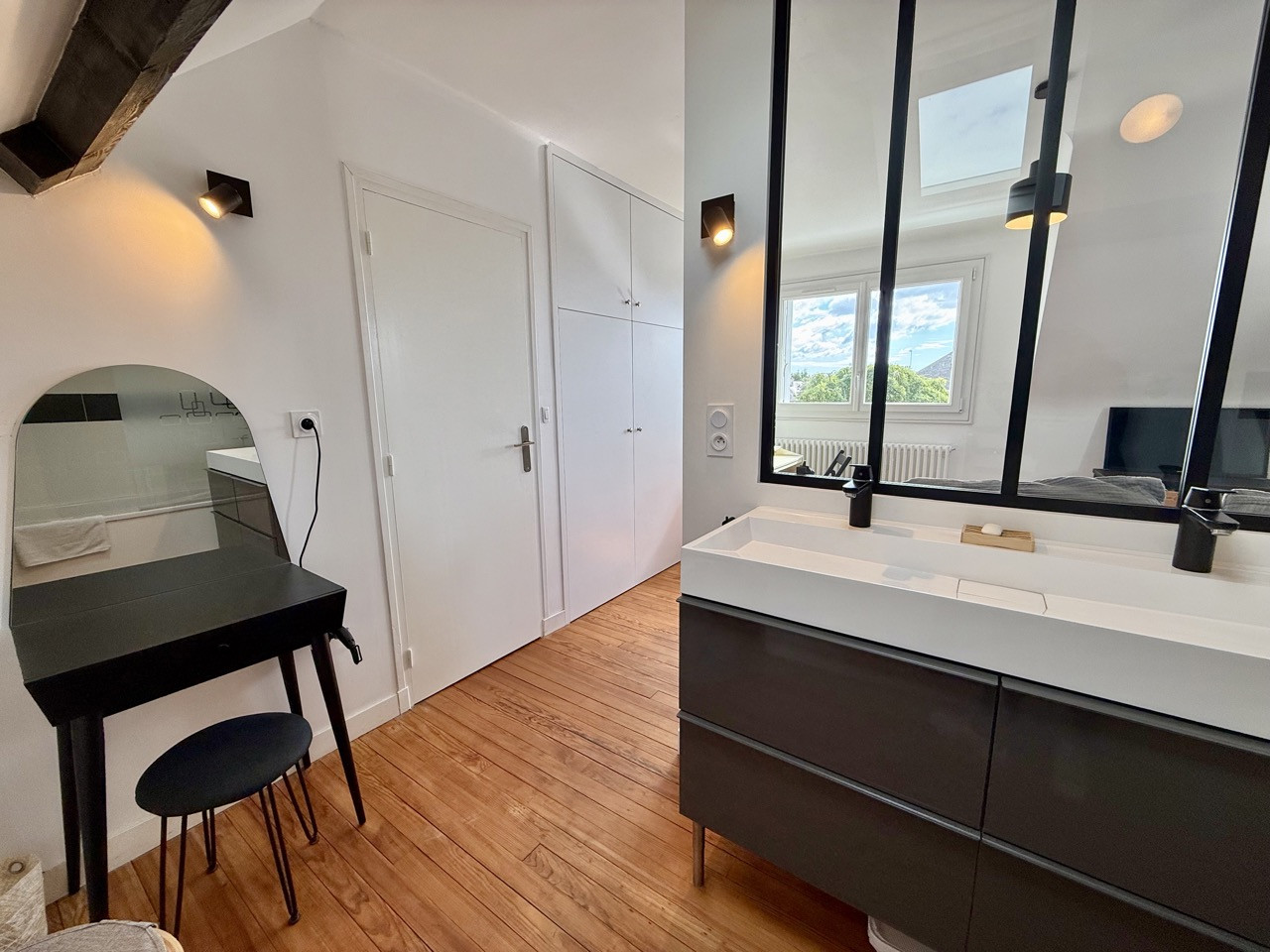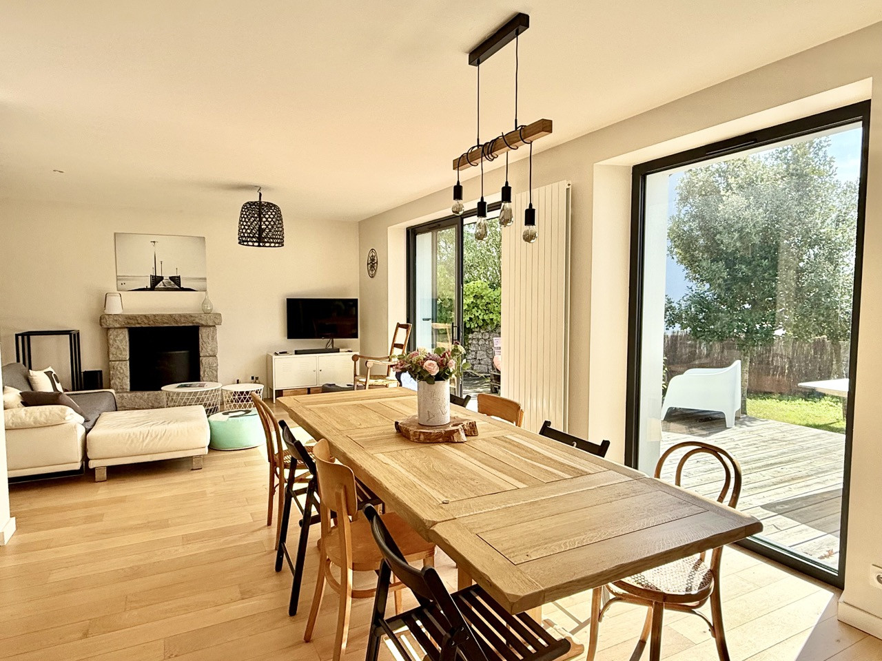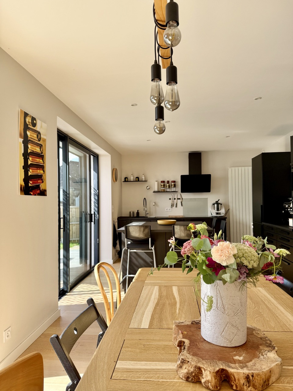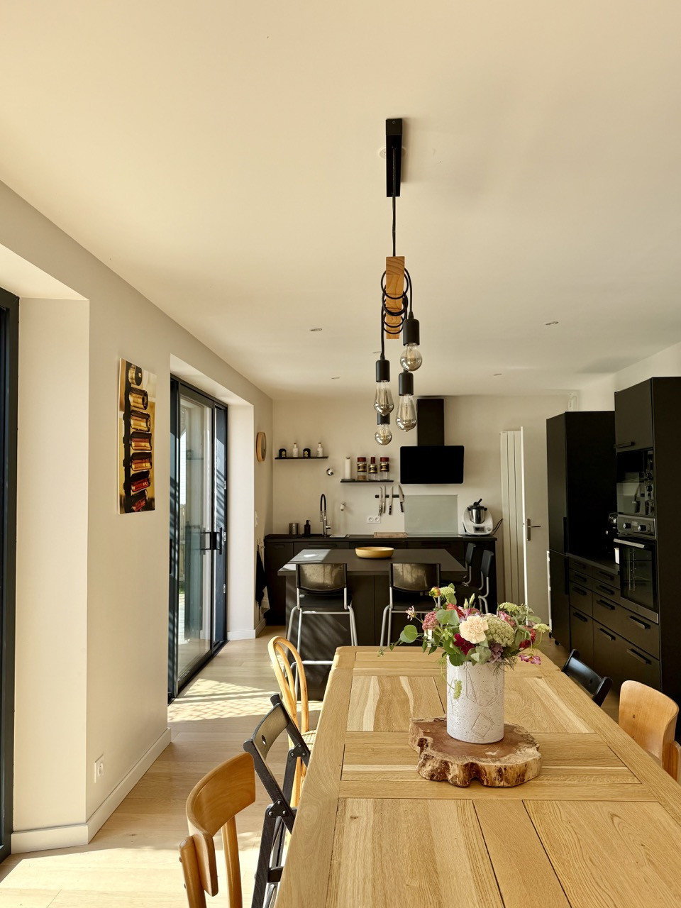 Vous profiterez d’une vaste pièce de vie baignée de lumière, avec salon et cheminée/insert, d’une cuisine moderne équipée avec îlot central, et d’une salle à manger conviviale ouverte sur de grandes baies vitrées donnant sur le jardin.