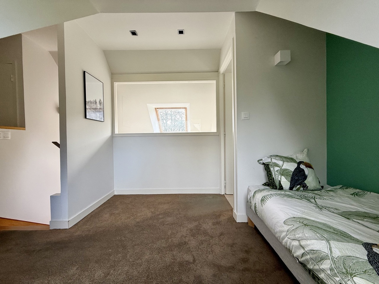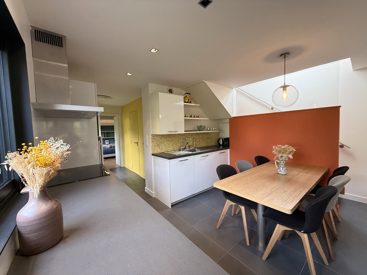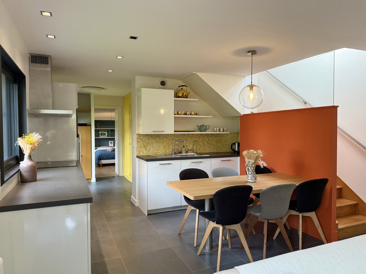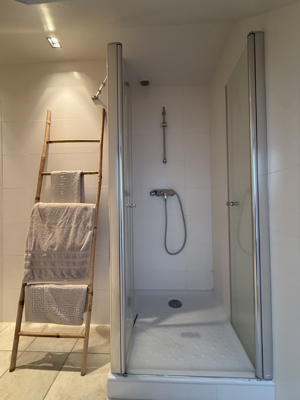Au RDC, vous profiterez d’une grande pièce de vie ouverte sur la terrasse & jardin, une cuisine toute équipée et aménagée, une chambre (lit 160) avec bureau, et une salle de douche avec toilettes séparées.