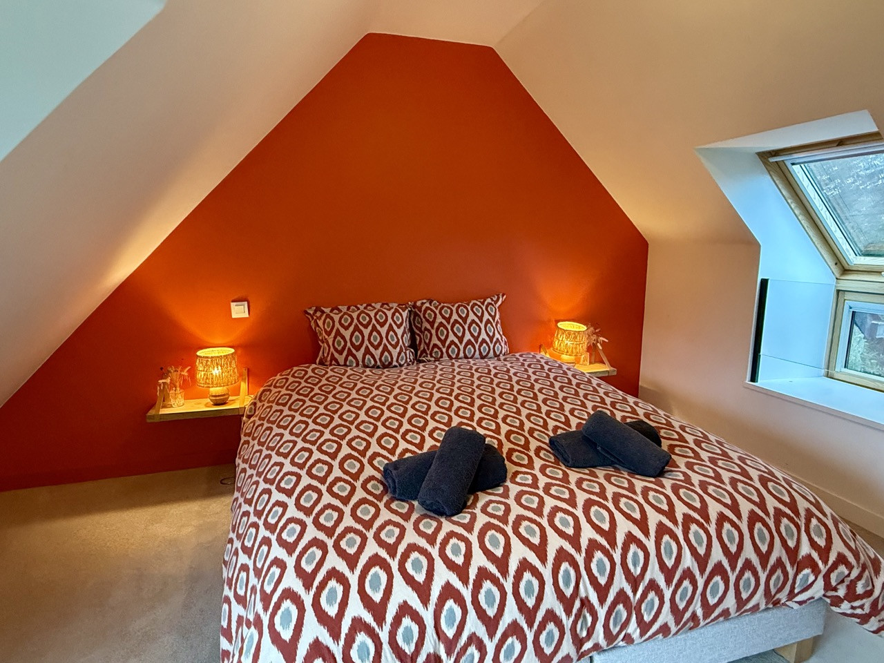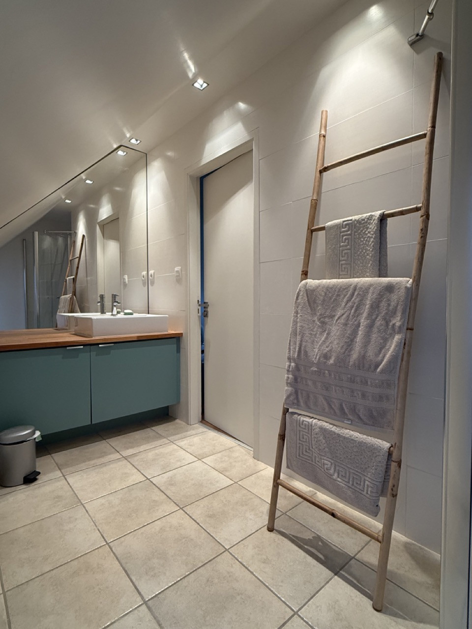 Au premier étage se trouvent 2 autres chambres (1 avec lit double, et 1 avec un canapé convertible) et une deuxième salle d'eau avec WC.