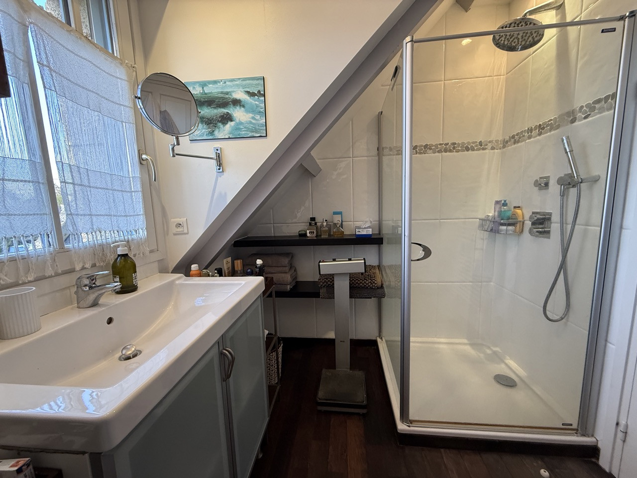 Au premier étage se trouvent 2 autres chambres (1 avec lit double, et 1 avec un canapé convertible) et une deuxième salle d'eau avec WC.