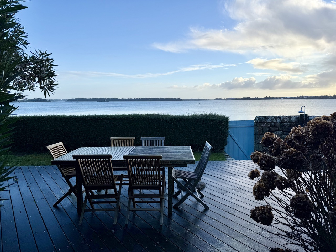 La maison est entourée d’un joli jardin offrant une vue imprenable sur le golfe du Morbihan et d'une terrasse.