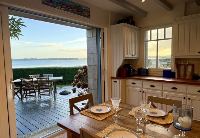 Située à Locmariaquer, Les Embruns est une maison de caractère en bord de mer, offrant un cadre privilégié face au Golfe du Morbihan.